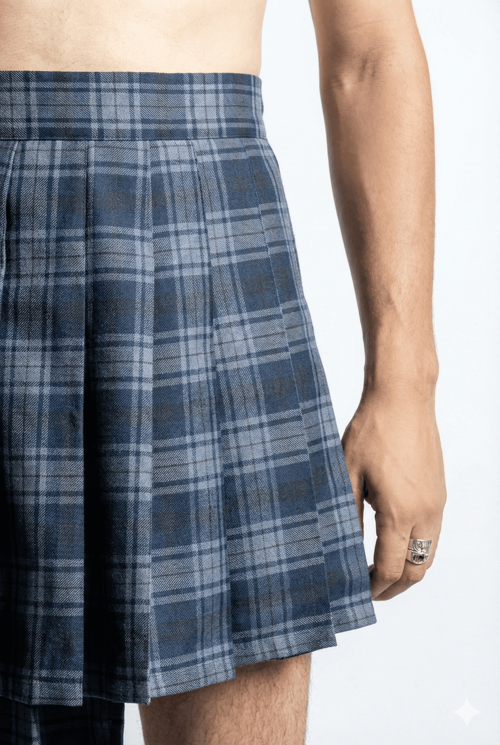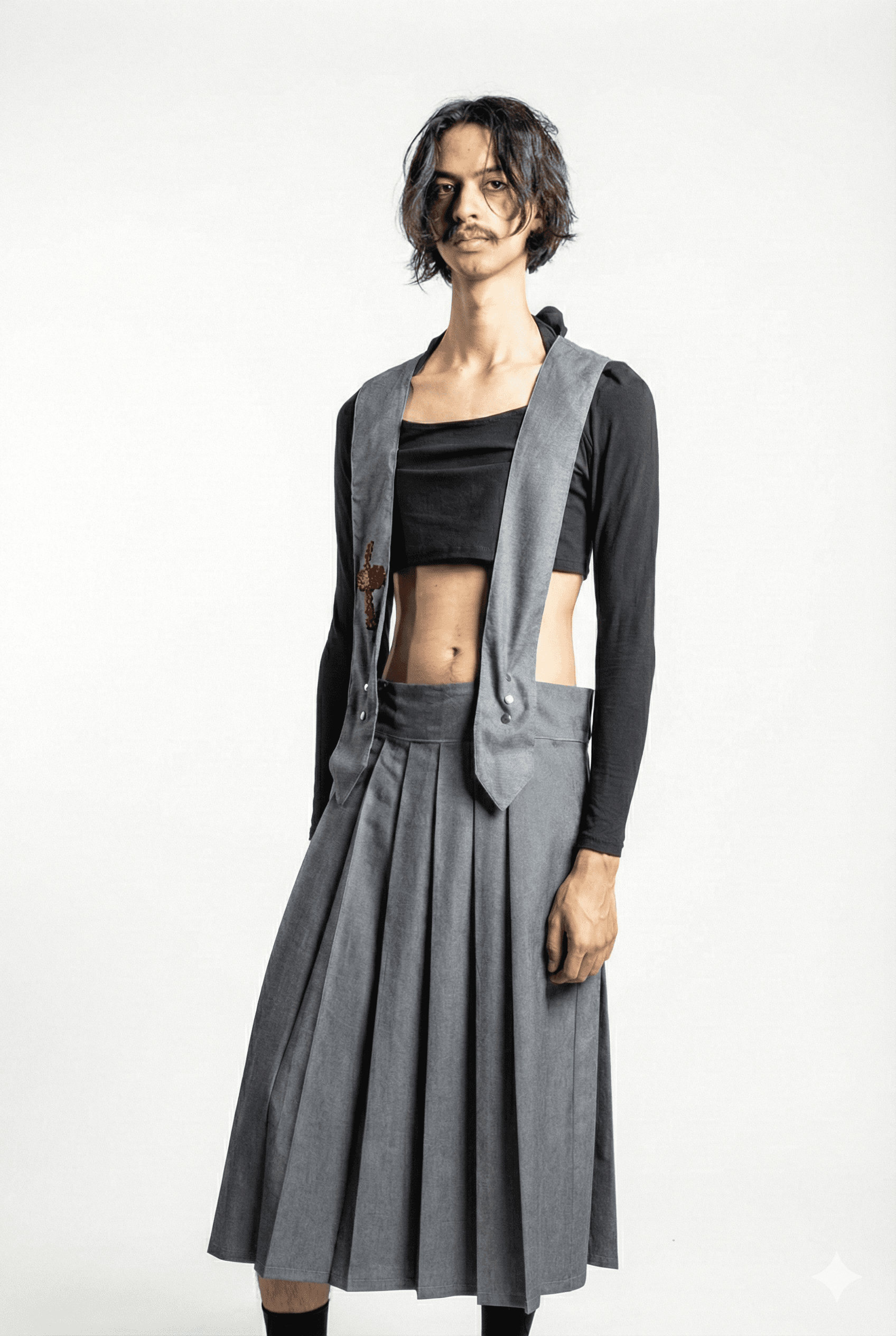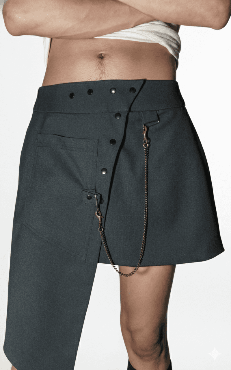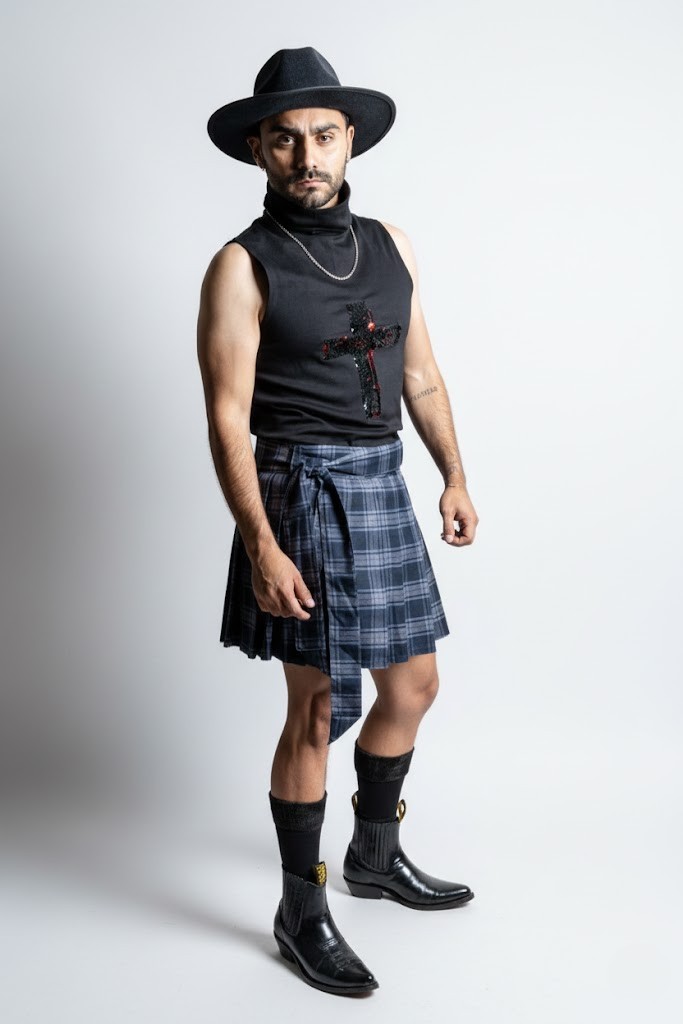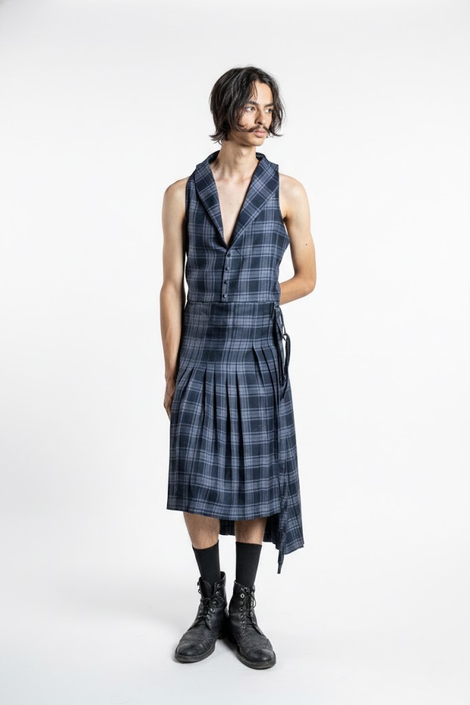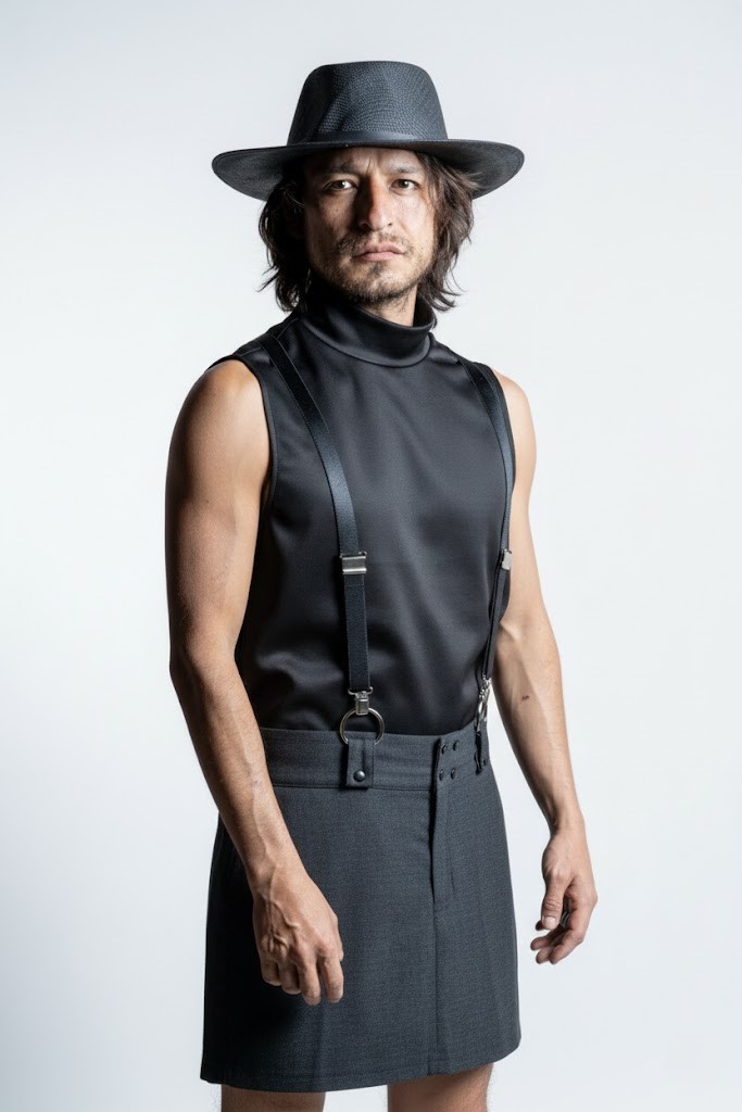 Me gusta pensar que la falda masculina puede funcionar como propuesta que genere un espacio de libertad, en un territorio complejo donde las concepciones en torno a la indumentaria también ejercen una forma de violencia. Mis faldas pretenden ser estructuras que liberen en lugar de contener.