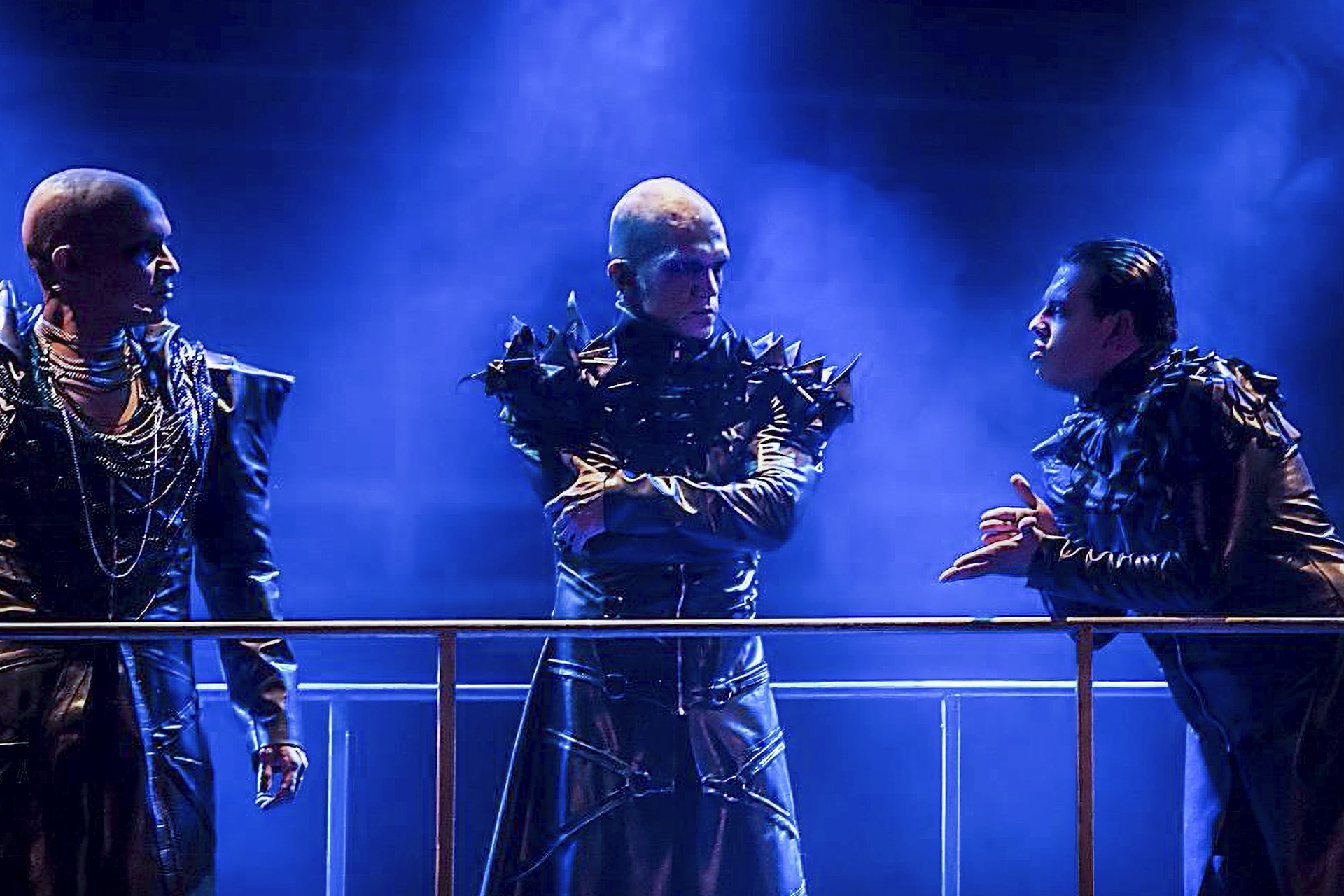 En el número de Herodes se usaron terciopelo, vinipiel y popelina camisera, combinando distintos acabados dentro del mismo acto. Para el ensamble del pueblo se emplearon licras de algodón y licras de poliéster, pensadas para el movimiento y la durabilidad.