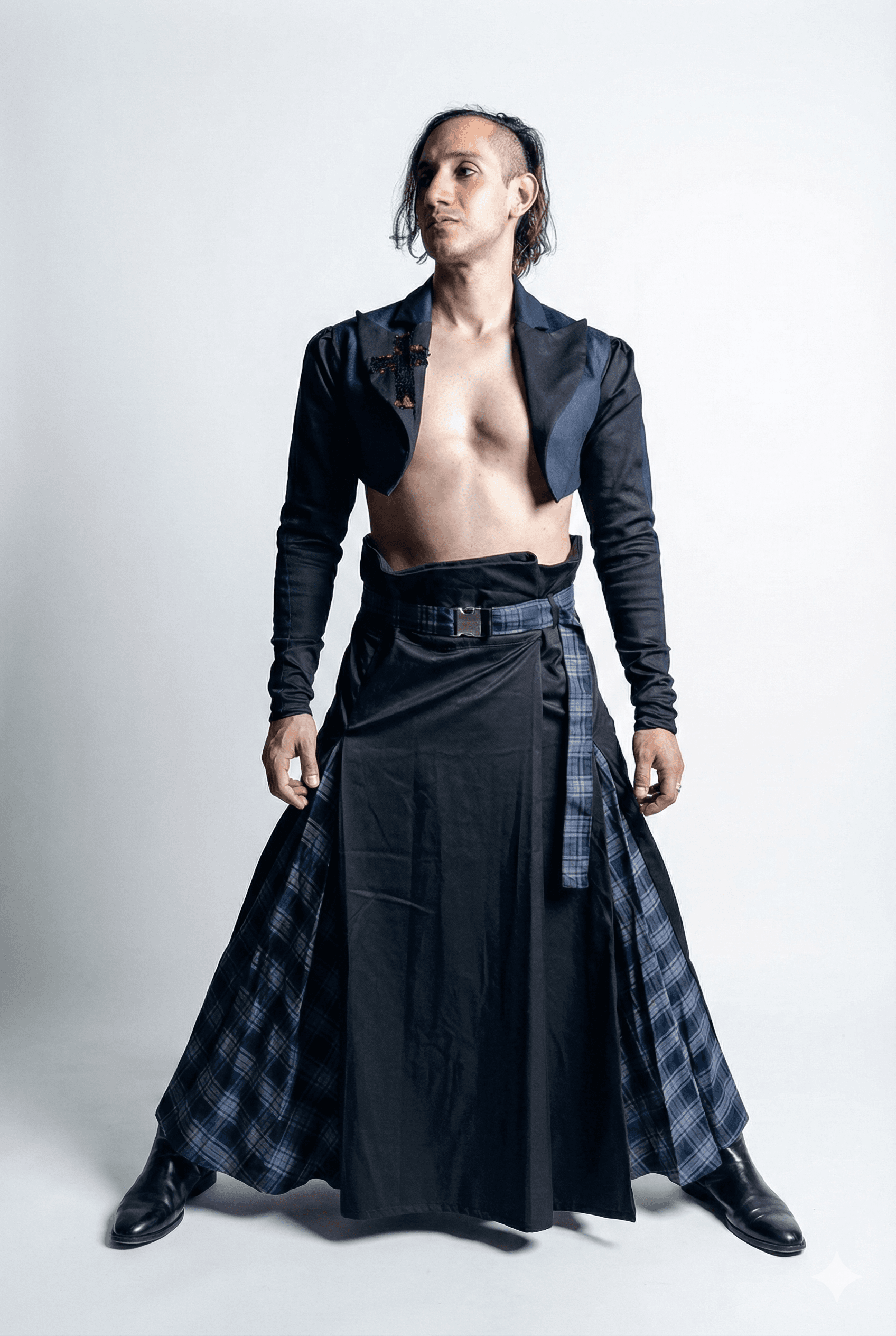 Diseñé faldas para hombres como una declaración estética y emocional: una prenda que históricamente en la cultura occidental ha sido fronterizada. La colección ROJO es una mirada hacia la masculinidad contemporánea y su deconstrucción.